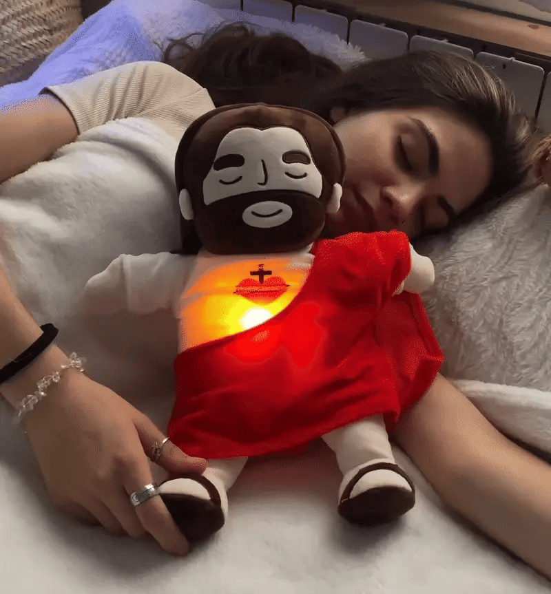 Cette peluche est conçue pour vous apporter sérénité et paix, vous aidant à soulager le stress et à profiter d'un sommeil réparateur. Idéale pour ceux qui trouvent du réconfort dans la foi, elle vous accompagnera sur le chemin d'un repos paisible.